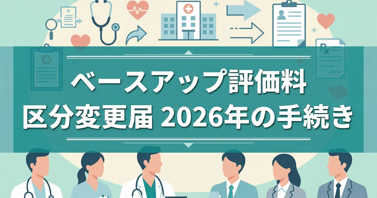 ベースアップ評価料の区分変更届とは、賃金改善の計画や実績に応じて、算定する評価料の区分を見直すための届出です。特にベースアップ評価料(Ⅱ)や入院ベースアップ評価料を算定している医療機関では、区分が固定ではなく、見込み額や算定回数を踏まえて見直しが必要になります。賃上げ率を上げたい事務担当者にとっての課題は、「いつ、どの様式で、どこまで見直せばよいか」が分かりにくい点ではないでしょうか。