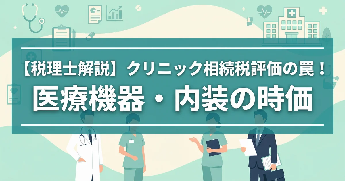 個人クリニックの事業用資産を相続するとき、医療機器や内装は一律に簿価で評価するわけではありません。相続税では、医療機器は一般動産として時価ベースで評価し、内装は建物そのものに含まれるのか、建物附属設備として別にみるのかで扱いが分かれます。院長のご家族や後継者にとっての問題は、帳簿の残高と相続税評価額が一致しないため、申告額を誤りやすい点にあります。税理士法人 辻総合会計でも、閉院か承継かが未確定の段階で、財産の区分整理から着手するケースが少なくありません。