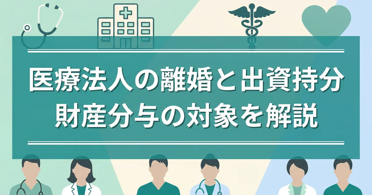 当法人でも、離婚そのものより「医療法人の持分評価をどう考えるか」「法人経営にどこまで影響するか」で相談が長引くケースを多く見ます。以下では、財産分与の考え方、出資持分の評価、実務上の注意点を整理します。