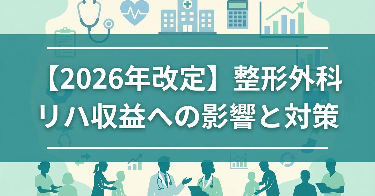 リハは「やっている」だけでは評価されにくく、計画性、目標設定、ADLや疼痛、運動機能の改善など、成果やプロセスが問われやすい領域です。整形外科では、慢性期・長期の外来リハが多いほど、算定の妥当性を説明できる運用(記録、目標、再評価)が収益の安定に直結します。