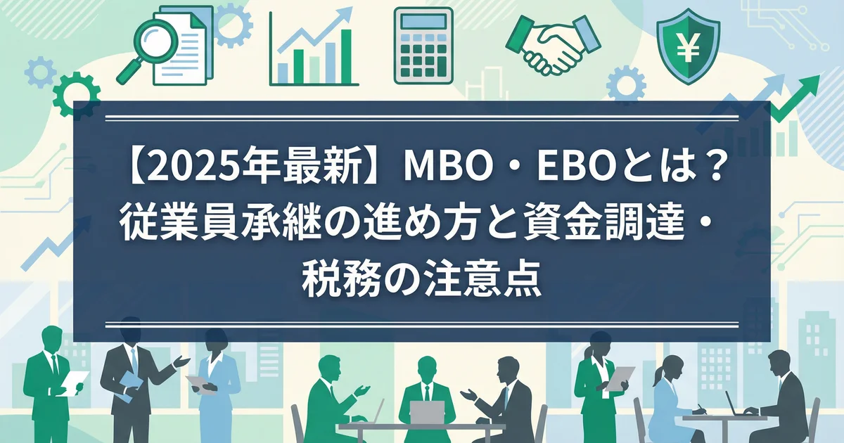 従業員への事業承継(MBO・EBO)は、後継者不在の解決策になり得ます。本記事ではMBOとEBOの違い、進め方5ステップ、資金調達とスキーム、税務・法務の注意点、支援制度までを実務目線で整理します。