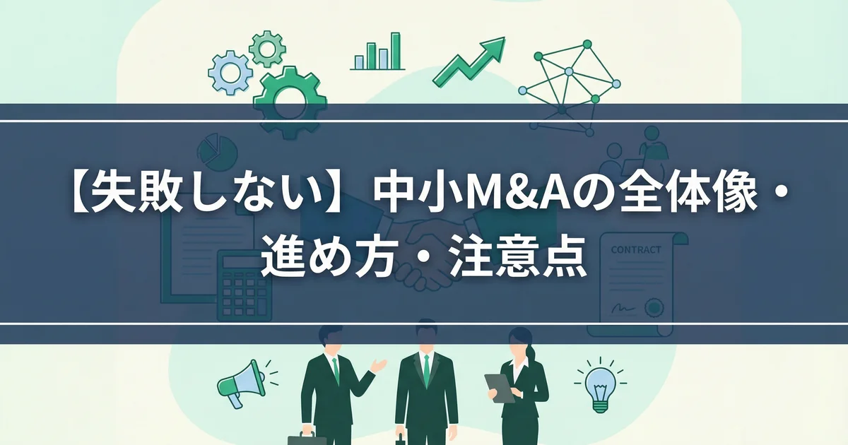 中小企業のM&Aを「売り手・買い手」双方の視点で整理。準備から交渉、デューデリジェンス、契約、クロージング後の統合作業まで、失敗しやすい論点(手数料、経営者保証、契約リスク)を具体的に解説します。