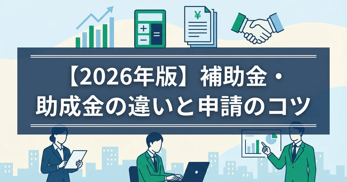 補助金と助成金の違い(目的・管轄・採択方式・入金時期)を整理し、2026年時点の申請手順(Jグランツ等)と不採択・不支給を避ける実務ポイントを税理士が解説します。