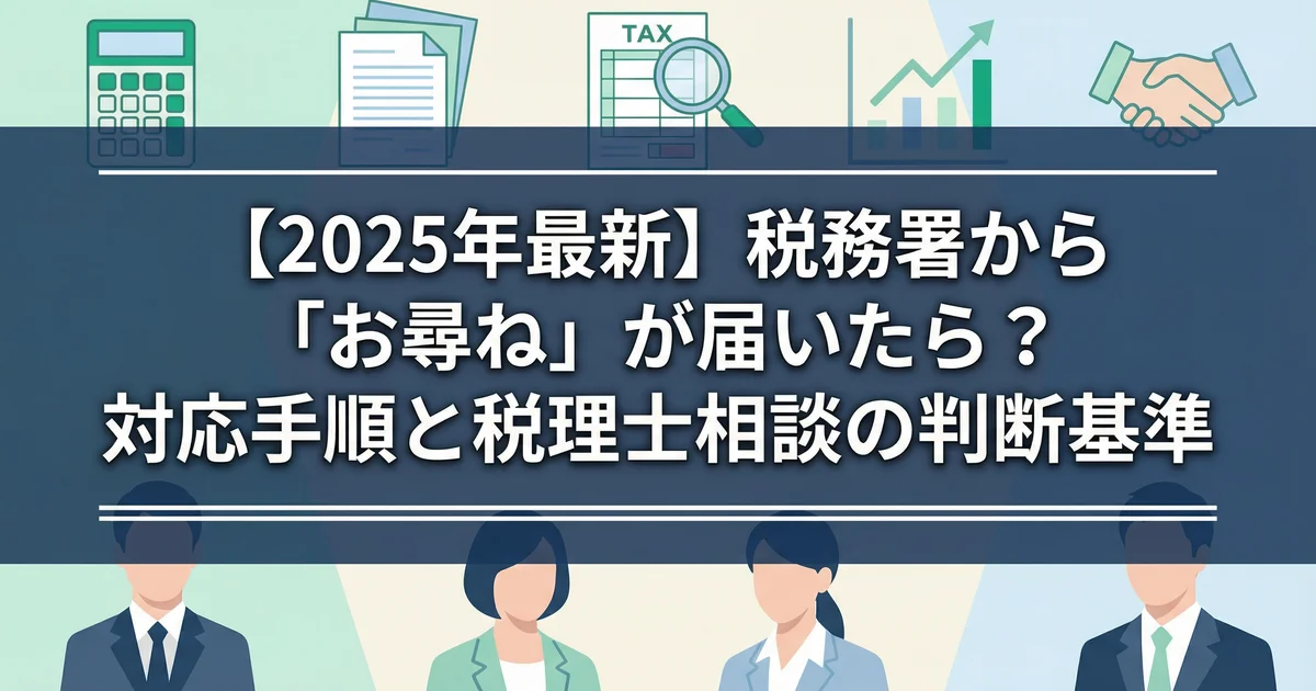 税務署から「お尋ね」文書が届いた場合の正しい対応手順を、期限確認・回答書の書き方・必要資料・放置リスク・税務調査との違いまで整理。詐欺メール等の見分け方と、税理士へ相談すべき判断基準も解説します。