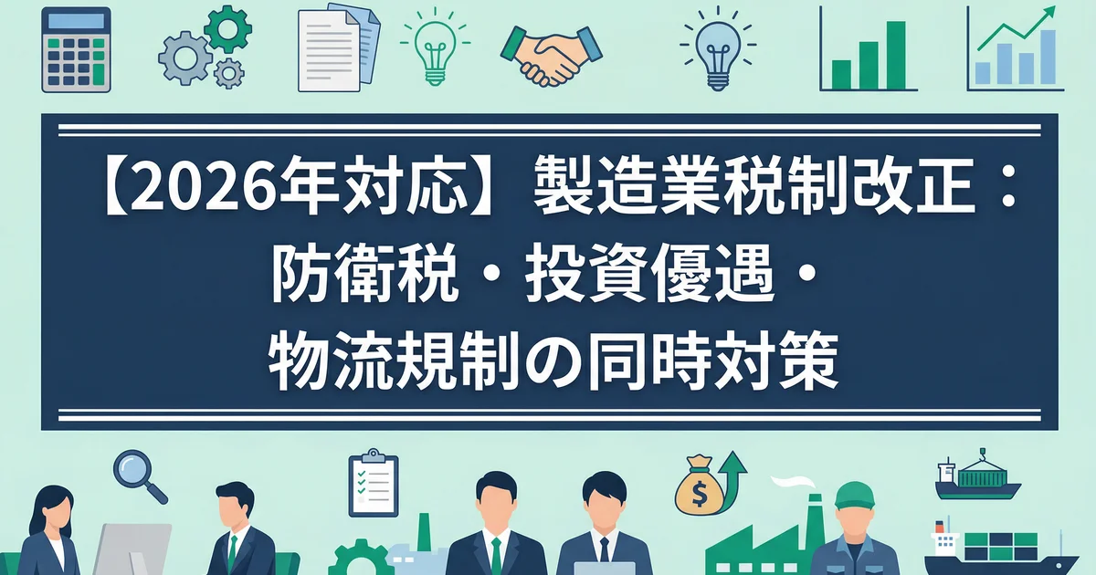2026年の製造業税制改正は「税負担+投資優遇+物流規制」が同時進行です
